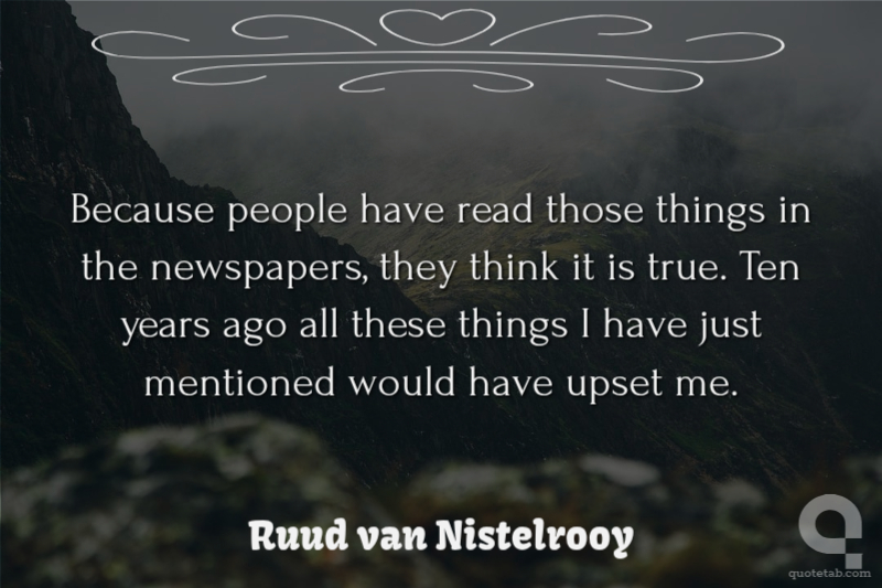Because people have read those things in the newspapers, they think it is true. Ten years ago all these things I have just mentioned would have upset me.