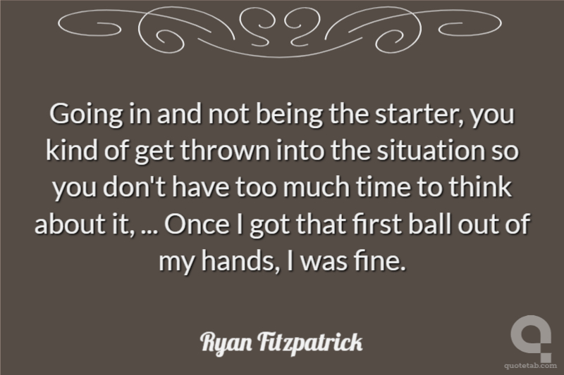Going in and not being the starter, you kind of get thrown into the situation so you don't have too much time to think about it, ... Once I got that first ball out of my hands, I was fine.