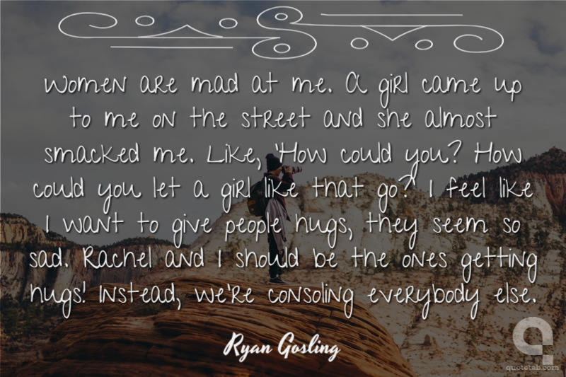 Women are mad at me. A girl came up to me on the street and she almost smacked me. Like, ‘How could you? How could you let a girl like that go?’ I feel like I want to give people hugs, they seem so sad. Rachel and I should be the ones getting hugs! Instead, we’re consoling everybody else.