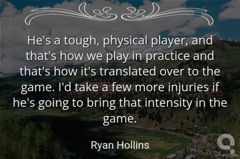 He's a tough, physical player, and that's how we play in practice and that's how it's translated over to the game. I'd take a few more injuries if he's going to bring that intensity in the game.