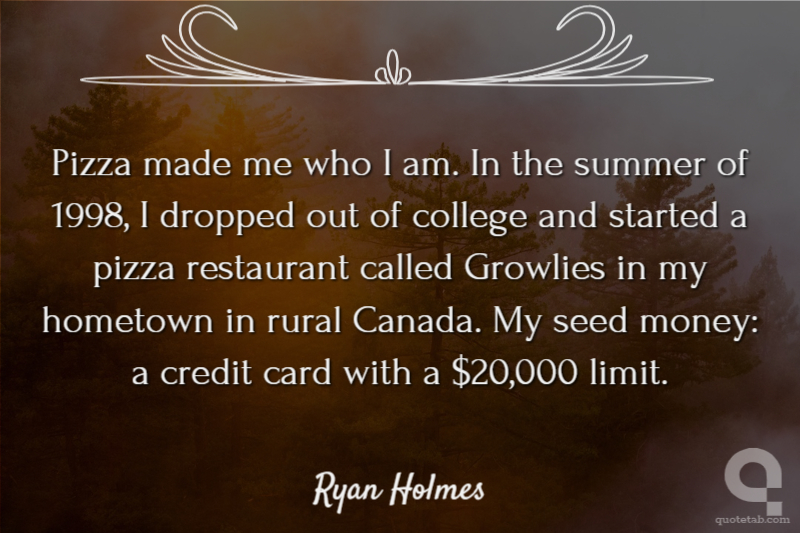 Pizza made me who I am. In the summer of 1998, I dropped out of college and started a pizza restaurant called Growlies in my hometown in rural Canada. My seed money: a credit card with a $20,000 limit.