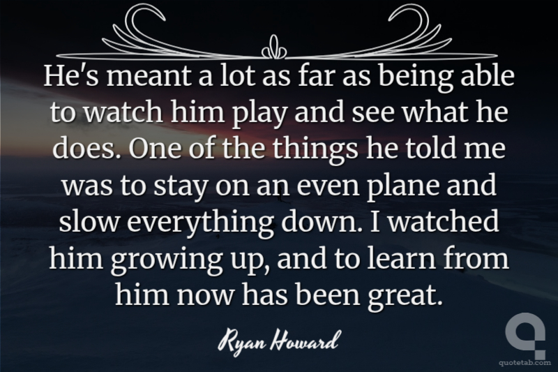 He's meant a lot as far as being able to watch him play and see what he does. One of the things he told me was to stay on an even plane and slow everything down. I watched him growing up, and to learn from him now has been great.