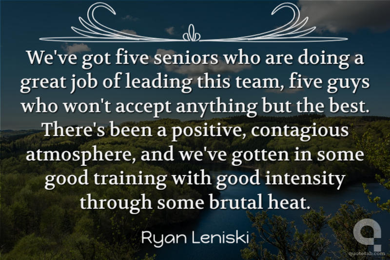 We've got five seniors who are doing a great job of leading this team, five guys who won't accept anything but the best. There's been a positive, contagious atmosphere, and we've gotten in some good training with good intensity through some brutal heat.