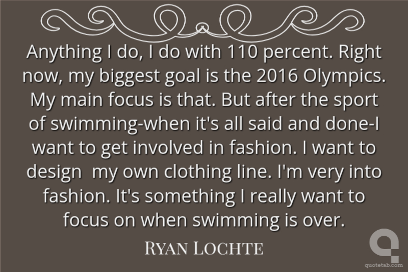 Anything I do, I do with 110 percent. Right now, my biggest goal is the 2016 Olympics. My main focus is that. But after the sport of swimming-when it's all said and done-I want to get involved in fashion. I want to design my own clothing line. I'm very into fashion. It's something I really want to focus on when swimming is over.
