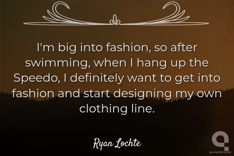 I'm big into fashion, so after swimming, when I hang up the Speedo, I definitely want to get into fashion and start designing my own clothing line.