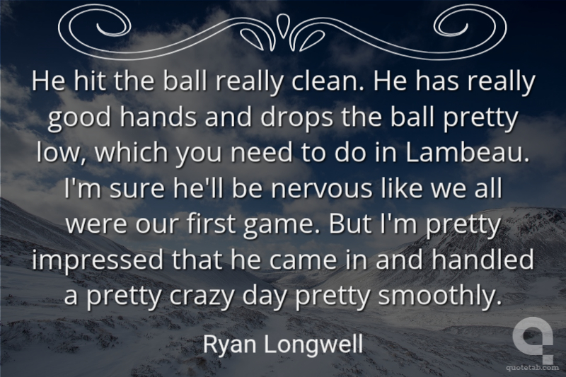 He hit the ball really clean. He has really good hands and drops the ball pretty low, which you need to do in Lambeau. I'm sure he'll be nervous like we all were our first game. But I'm pretty impressed that he came in and handled a pretty crazy day pretty smoothly.