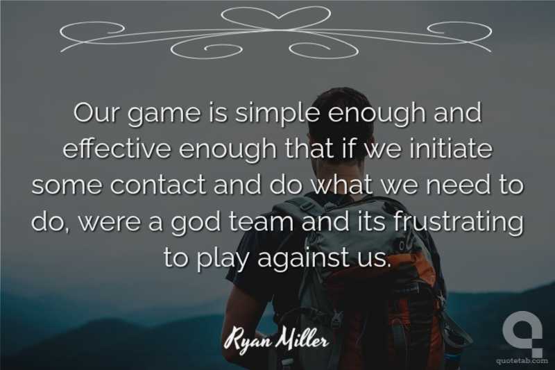 Our game is simple enough and effective enough that if we initiate some contact and do what we need to do, were a god team and its frustrating to play against us.