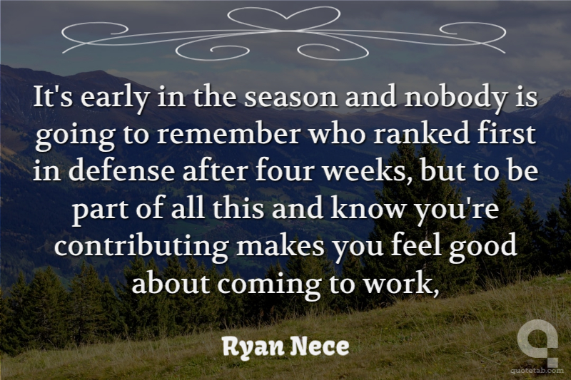 It's early in the season and nobody is going to remember who ranked first in defense after four weeks, but to be part of all this and know you're contributing makes you feel good about coming to work,