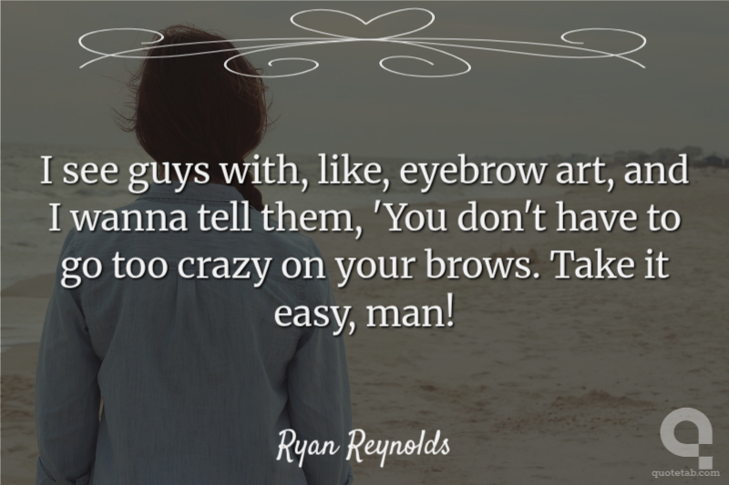 I see guys with, like, eyebrow art, and I wanna tell them, 'You don't have to go too crazy on your brows. Take it easy, man!