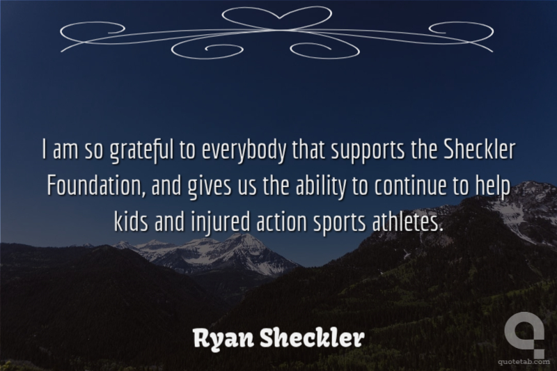 I am so grateful to everybody that supports the Sheckler Foundation, and gives us the ability to continue to help kids and injured action sports athletes.