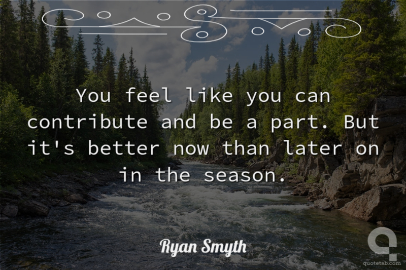You feel like you can contribute and be a part. But it's better now than later on in the season.