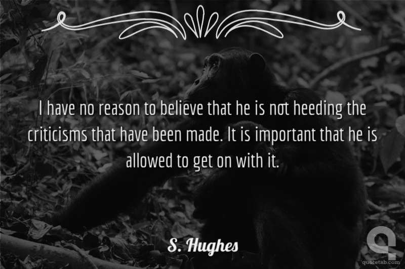 I have no reason to believe that he is not heeding the criticisms that have been made. It is important that he is allowed to get on with it.