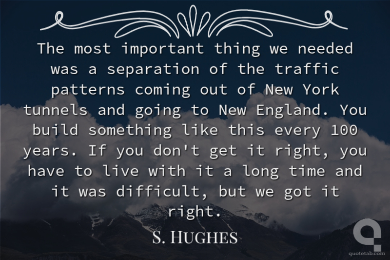 The most important thing we needed was a separation of the traffic patterns coming out of New York tunnels and going to New England. You build something like this every 100 years. If you don't get it right, you have to live with it a long time and it was difficult, but we got it right.