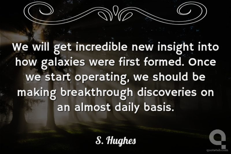 We will get incredible new insight into how galaxies were first formed. Once we start operating, we should be making breakthrough discoveries on an almost daily basis.