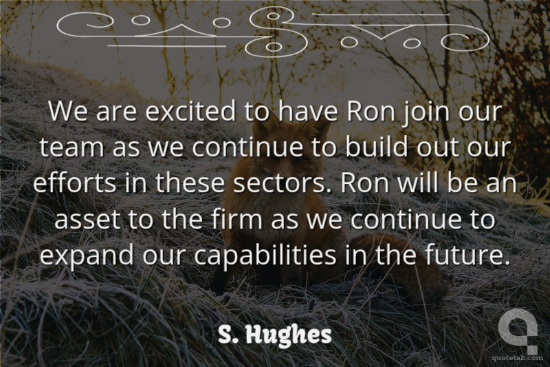 We are excited to have Ron join our team as we continue to build out our efforts in these sectors. Ron will be an asset to the firm as we continue to expand our capabilities in the future.