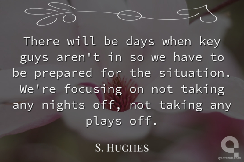 There will be days when key guys aren't in so we have to be prepared for the situation. We're focusing on not taking any nights off, not taking any plays off.