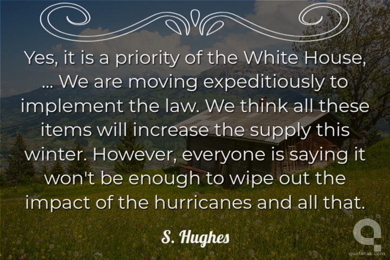 Yes, it is a priority of the White House, ... We are moving expeditiously to implement the law. We think all these items will increase the supply this winter. However, everyone is saying it won't be enough to wipe out the impact of the hurricanes and all that.