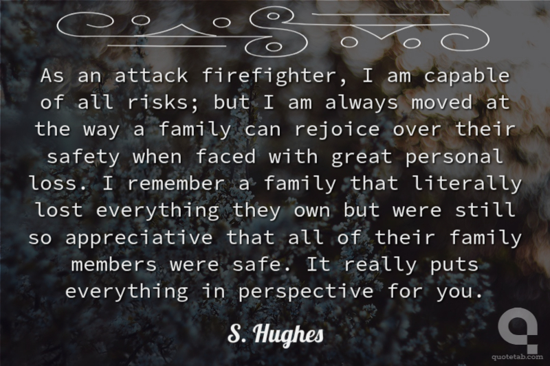 As an attack firefighter, I am capable of all risks; but I am always moved at the way a family can rejoice over their safety when faced with great personal loss. I remember a family that literally lost everything they own but were still so appreciative that all of their family members were safe. It really puts everything in perspective for you.