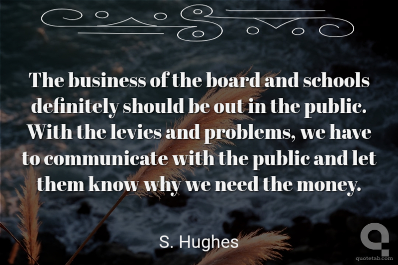 The business of the board and schools definitely should be out in the public. With the levies and problems, we have to communicate with the public and let them know why we need the money.