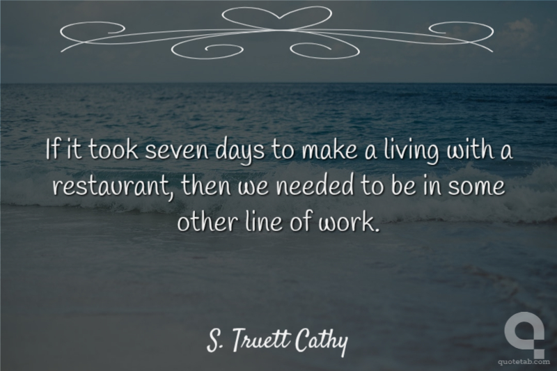 If it took seven days to make a living with a restaurant, then we needed to be in some other line of work.