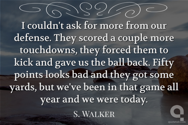 I couldn't ask for more from our defense. They scored a couple more touchdowns, they forced them to kick and gave us the ball back. Fifty points looks bad and they got some yards, but we've been in that game all year and we were today.