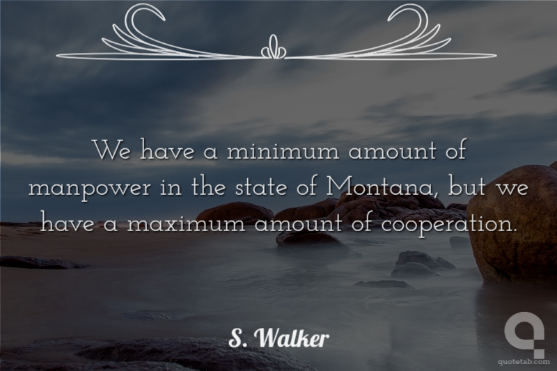 We have a minimum amount of manpower in the state of Montana, but we have a maximum amount of cooperation.
