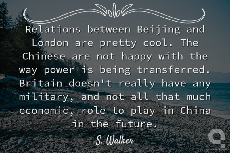 Relations between Beijing and London are pretty cool. The Chinese are not happy with the way power is being transferred. Britain doesn't really have any military, and not all that much economic, role to play in China in the future.