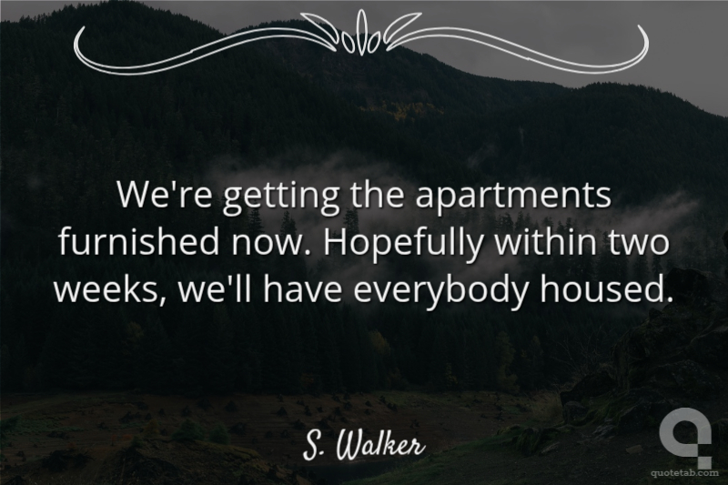 We're getting the apartments furnished now. Hopefully within two weeks, we'll have everybody housed.