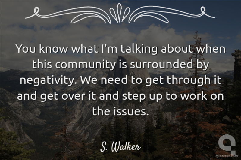 You know what I'm talking about when this community is surrounded by negativity. We need to get through it and get over it and step up to work on the issues.