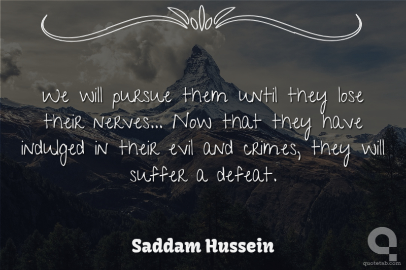 We will pursue them until they lose their nerves... Now that they have indulged in their evil and crimes, they will suffer a defeat.