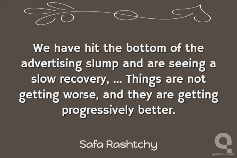 We have hit the bottom of the advertising slump and are seeing a slow recovery, ... Things are not getting worse, and they are getting progressively better.
