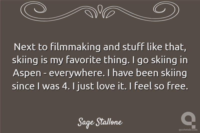Next to filmmaking and stuff like that, skiing is my favorite thing. I go skiing in Aspen - everywhere. I have been skiing since I was 4. I just love it. I feel so free.