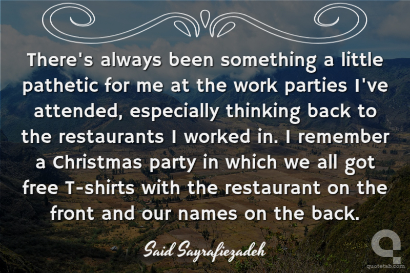 There's always been something a little pathetic for me at the work parties I've attended, especially thinking back to the restaurants I worked in. I remember a Christmas party in which we all got free T-shirts with the restaurant on the front and our names on the back.