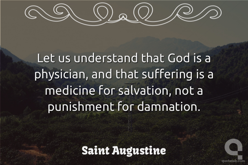 Let us understand that God is a physician, and that suffering is a medicine for salvation, not a punishment for damnation.