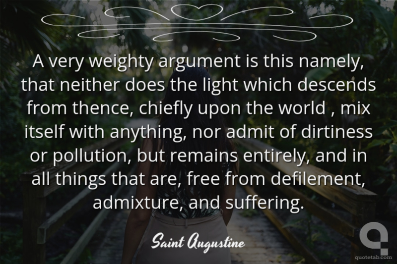 A very weighty argument is this namely, that neither does the light which descends from thence, chiefly upon the world , mix itself with anything, nor admit of dirtiness or pollution, but remains entirely, and in all things that are, free from defilement, admixture, and suffering.