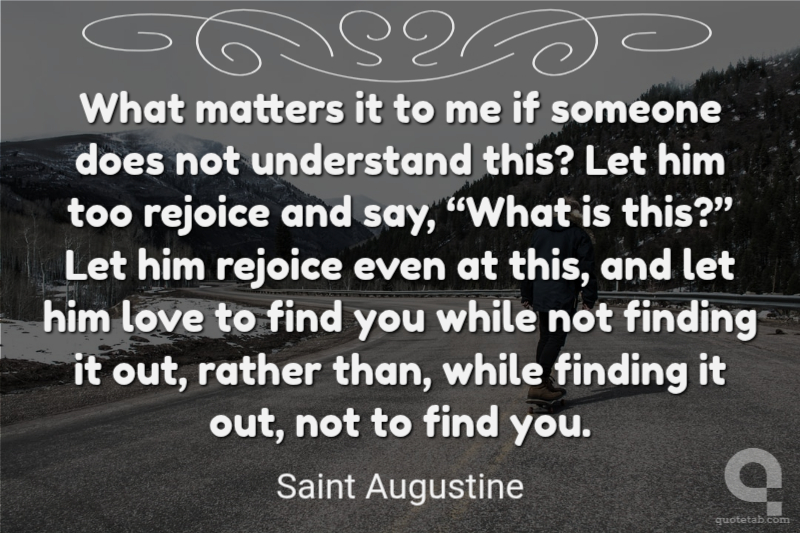 What matters it to me if someone does not understand this? Let him too rejoice and say, “What is this?” Let him rejoice even at this, and let him love to find you while not finding it out, rather than, while finding it out, not to find you.