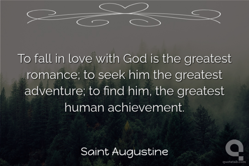 To fall in love with God is the greatest romance; to seek him the greatest adventure; to find him, the greatest human achievement.