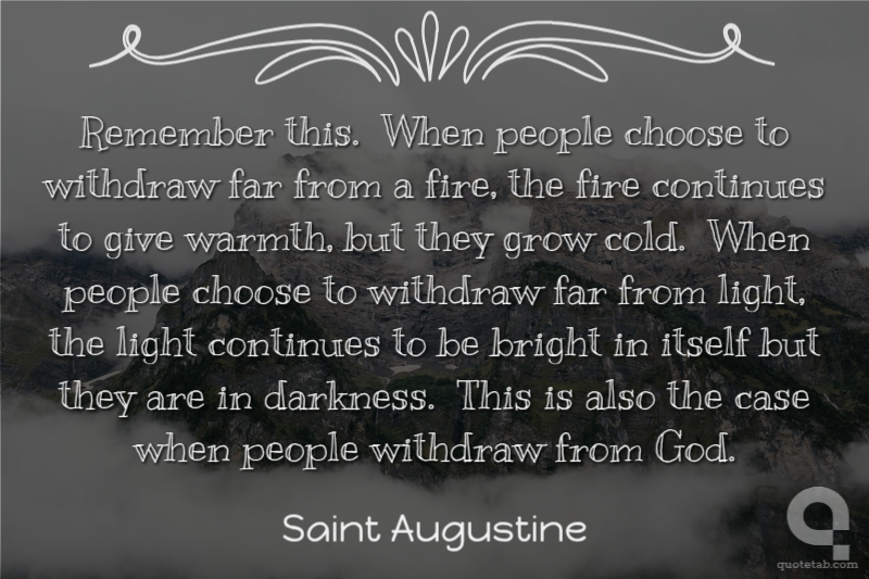 Remember this. When people choose to withdraw far from a fire, the fire continues to give warmth, but they grow cold. When people choose to withdraw far from light, the light continues to be bright in itself but they are in darkness. This is also the case when people withdraw from God.