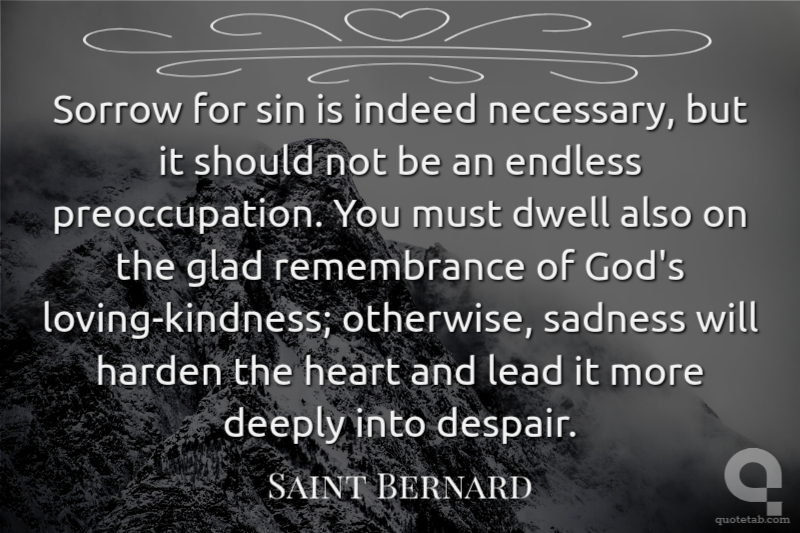 Sorrow for sin is indeed necessary, but it should not be an endless preoccupation. You must dwell also on the glad remembrance of God's loving-kindness; otherwise, sadness will harden the heart and lead it more deeply into despair.