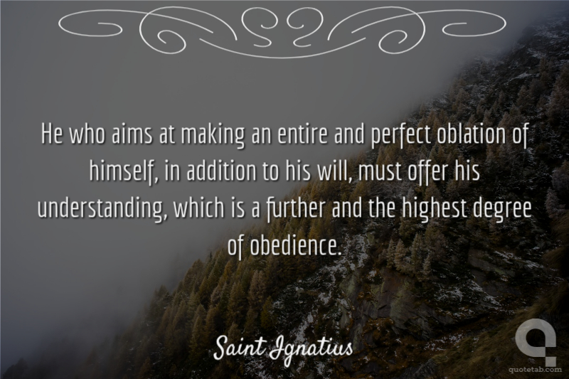 He who aims at making an entire and perfect oblation of himself, in addition to his will, must offer his understanding, which is a further and the highest degree of obedience.