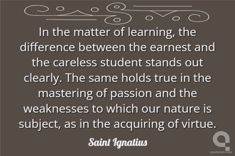 In the matter of learning, the difference between the earnest and the careless student stands out clearly. The same holds true in the mastering of passion and the weaknesses to which our nature is subject, as in the acquiring of virtue.