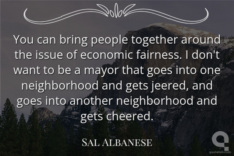 You can bring people together around the issue of economic fairness. I don't want to be a mayor that goes into one neighborhood and gets jeered, and goes into another neighborhood and gets cheered.