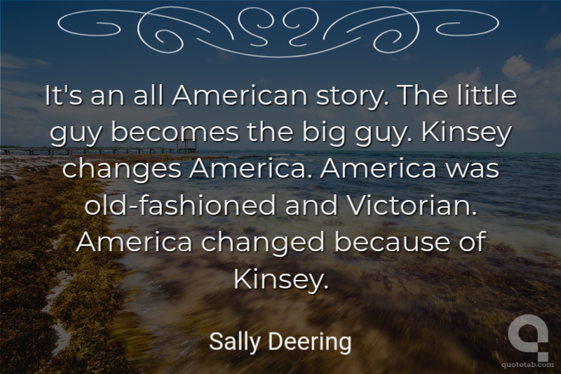 It's an all American story. The little guy becomes the big guy. Kinsey changes America. America was old-fashioned and Victorian. America changed because of Kinsey.