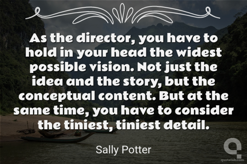 As the director, you have to hold in your head the widest possible vision. Not just the idea and the story, but the conceptual content. But at the same time, you have to consider the tiniest, tiniest detail.