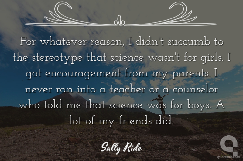 For whatever reason, I didn't succumb to the stereotype that science wasn't for girls. I got encouragement from my parents. I never ran into a teacher or a counselor who told me that science was for boys. A lot of my friends did.