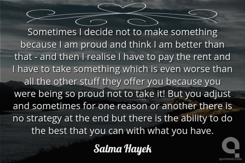 Sometimes I decide not to make something because I am proud and think I am better than that - and then I realise I have to pay the rent and I have to take something which is even worse than all the other stuff they offer you because you were being so proud not to take it! But you adjust and sometimes for one reason or another there is no strategy at the end but there is the ability to do the best that you can with what you have.