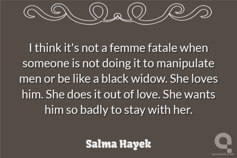 I think it's not a femme fatale when someone is not doing it to manipulate men or be like a black widow. She loves him. She does it out of love. She wants him so badly to stay with her.