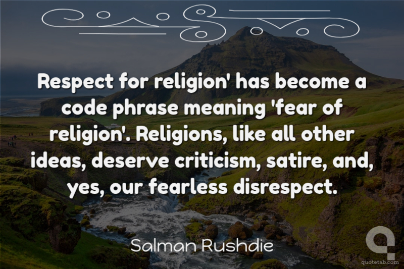 Respect for religion' has become a code phrase meaning 'fear of religion'. Religions, like all other ideas, deserve criticism, satire, and, yes, our fearless disrespect.