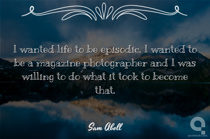 I wanted life to be episodic. I wanted to be a magazine photographer and I was willing to do what it took to become that.