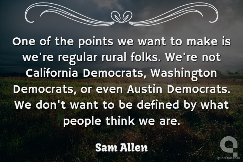 One of the points we want to make is we're regular rural folks. We're not California Democrats, Washington Democrats, or even Austin Democrats. We don't want to be defined by what people think we are.
